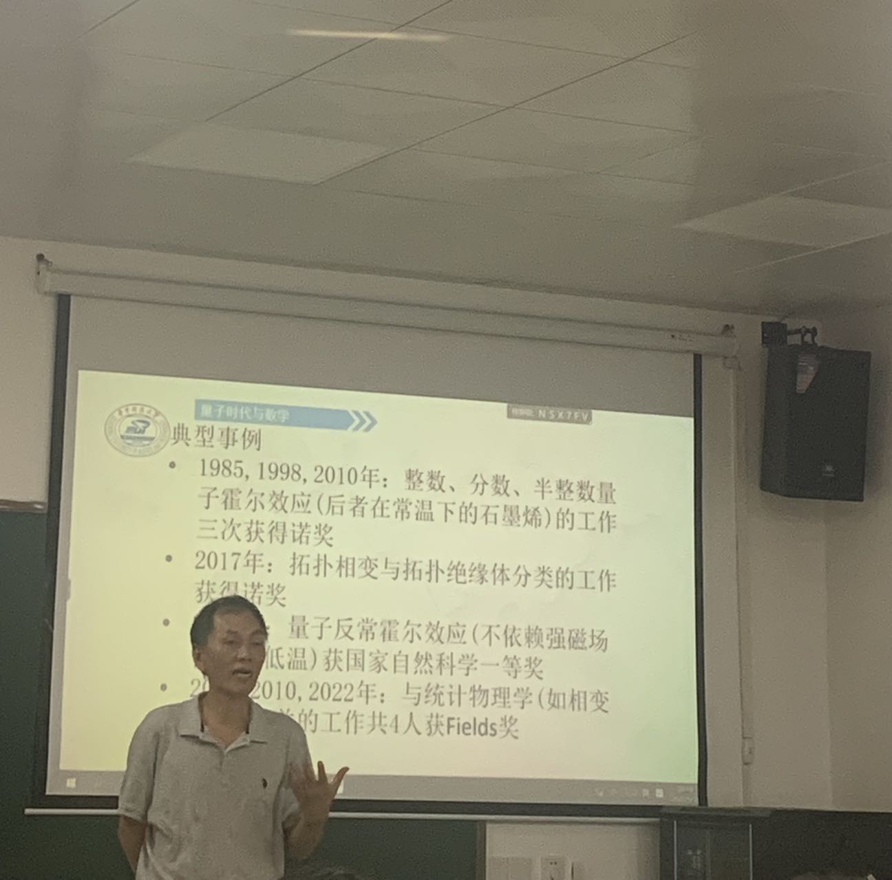 郑权教授分别从分析数学与分析数学家、测不准原理及应用、深度学习及其数学基础、量子时代与数学四个方面介绍了自己的研究工作和独特的见解。他用数学语言概括了自己的60岁:30年教授+30年带研究生,简要的介绍了当代分析领域中世界著名数学家们的研究成果、典型事例以及自己的研究经历,着重讲解了数学中前瞻性的思考和布局。
