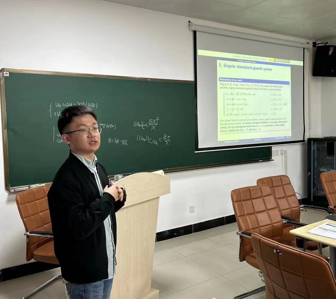 邹猛老师主要讲述了单细胞数据算法分析中存在的一些生物问题及其理论上缺少严格的数学推导,进一步在数据整合算法中,需要整合分析不同数据集中的“关联信息”,如空间数据集的隐藏的发育信息,不同物种的趋同效应等。另外,从单分子水平上去检测协同效应,如各种修饰和可变剪切的检测及其调控关系,当前算法的精度还是比较一般,需要更快更精确的算法。任国强老师从经典的Keller-Segel模型出发,介绍了经典K-S模型的一些衍生模型以及研究现状,其次介绍了自己的研究动机和解决的问题,最后提出了自己感兴趣的问题以及这些问题的难点。