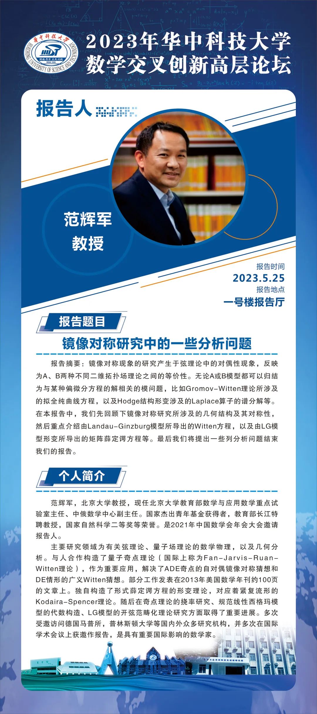 学科交叉融合是当前科学技术发展的重大特征,是新学科产生的重要源泉,是培养创新型人才的有效路径,是经济社会发展的内在需求。为此,betway西汉姆联官方网站数学与应用学科交叉创新研究院举办2023年betway西汉姆联官方网站数学交叉创新高层论坛,学术报告安排如下。欢迎老师们、同学们参加!
