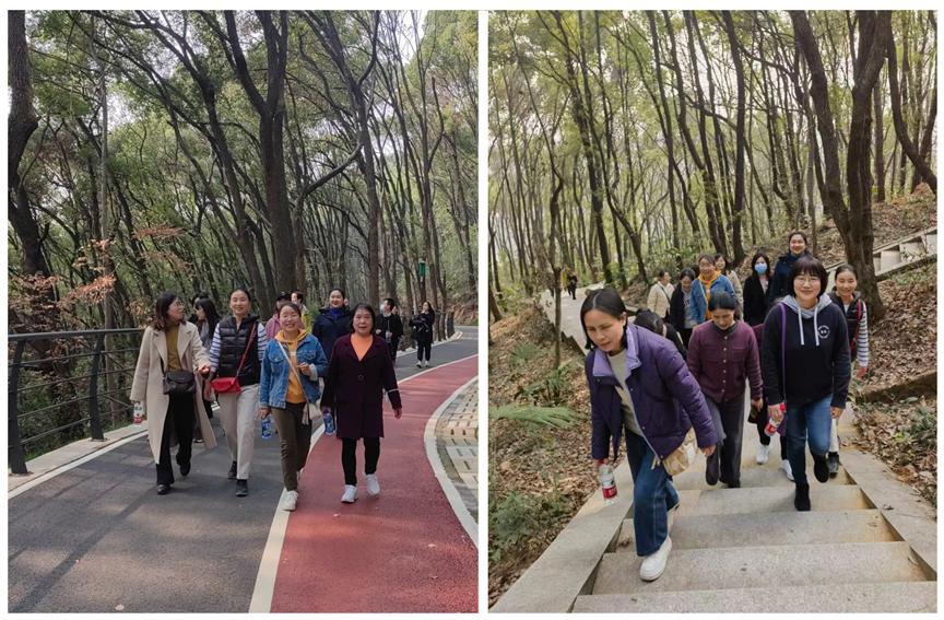 下午2:30,暖阳普照,喻家山春风怡人,老师们沿着山间蜿蜒而上的台阶,呼吸着新鲜空气,欣赏着沿途风景,相互交谈着工作和生活中的趣事,欢声笑语飘洒一路。