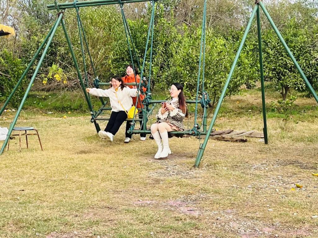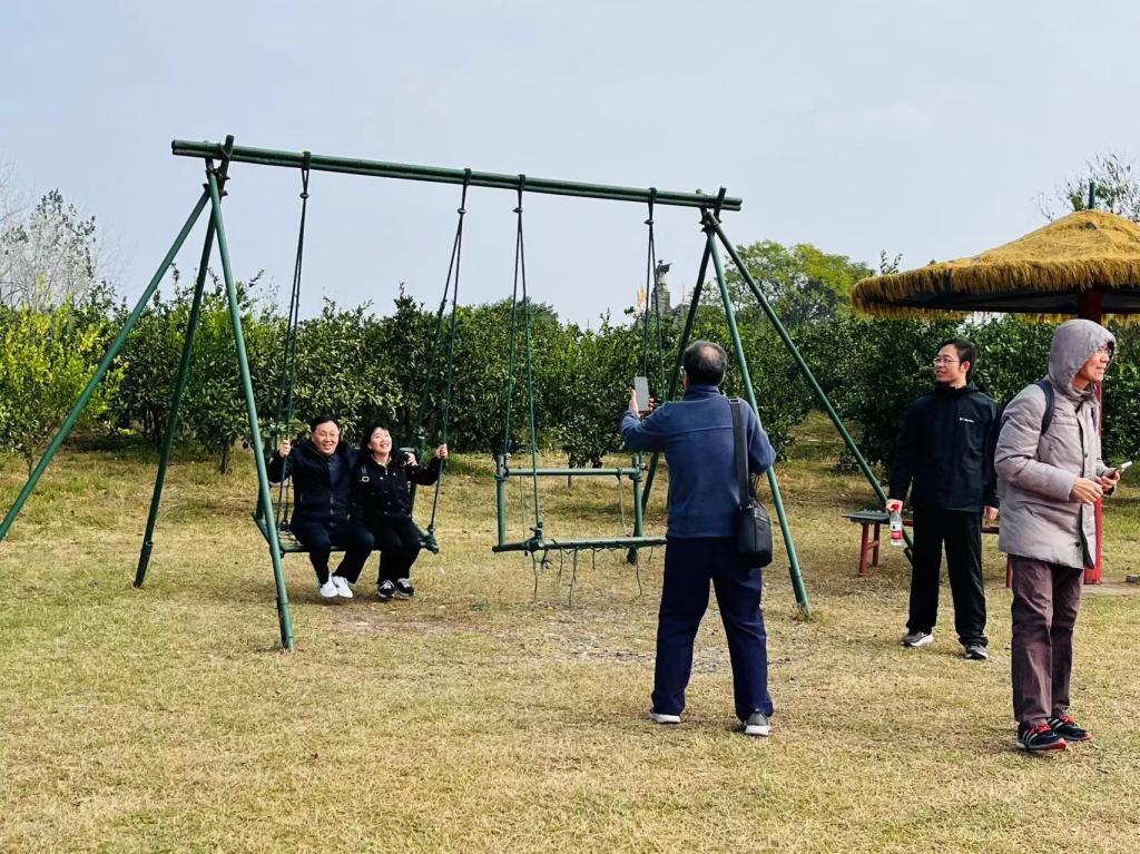 湖畔餐厅就餐后大家稍作休息就踏上了三国古战船游严西湖。天公作美,下午一扫阴霾,竟然出了太阳,大家坐在船上欣赏着严西湖的美景,忘却烦恼,感受着湖光山色,心情格外舒畅。随后登上三国遗址水庙岛,登上码头迎面就能看到一尊雄伟的大禹雕像。岛上有大片的桔子树,可惜现在已是深秋,再加上近期连绵秋雨,树上不多的桔子果实大部分已经腐烂。大家有的满岛搜寻着完好的桔子,有的聚在“粉红沙滩”上闲聊,有的则坐在吊椅上悠闲的晒着太阳。