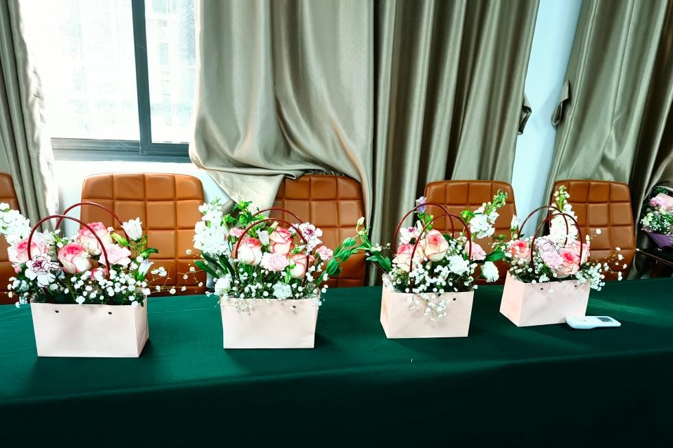 活动最后,老师们手持自己亲手制作的花艺作品合影留念。此次活动让老师们在繁忙的工作中得以偷闲,既愉悦了身心,又得以提升艺术品位和艺术鉴赏力,体现了公司对教职工人文关怀的重视,为迎接“三八”妇女节增添了浓厚的节日氛围。
