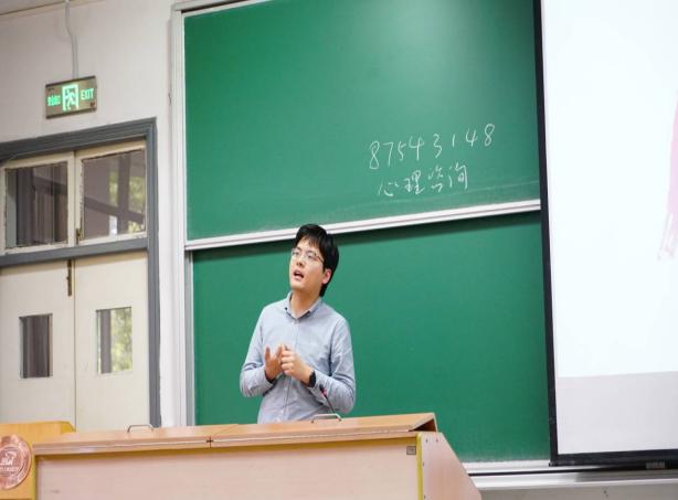 大会第一项,王佳恒老师对同学们进行心理健康教育。首先,王老师向同学们介绍了常见的心理疾病及其产生原因,例如抑郁症、精神分裂等。王老师通过一些视频的对比让大家了解了几种常见心理疾病的症状,同时列举出一些数据向同学们展示了社会上心理疾病的患病比例。然后,王老师介绍了相关心理疾病的求助途径与治疗方式,他列举了一些真实的例子帮助大家记忆理解。最后,他向同学们介绍了心理咨询的重要性及有效性,同时介绍了公司的心理咨询中心,并且纠正了大家以往对心理咨询的错误认识。王佳恒老师的讲解生动有趣,他向大家普及了一些常见心理知识,改变了大家以往对心理疾病的一些看法,同学们都聚精会神,听得津津有味。