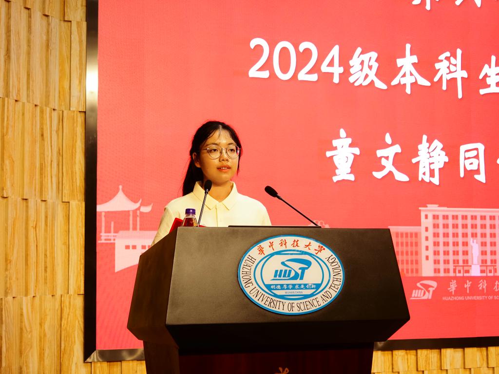 本科生新生代表童文静分享了自己对数学学科的认识以及对老员工活的期待。作为华中大的新主人,她相信同学们会有放飞梦想的资本,有慎思明辨的能力,有奋发图强的信念,有博学笃志的责任,并表示要用青春诠释曾经的誓言,用汗水锻造明日的辉煌。