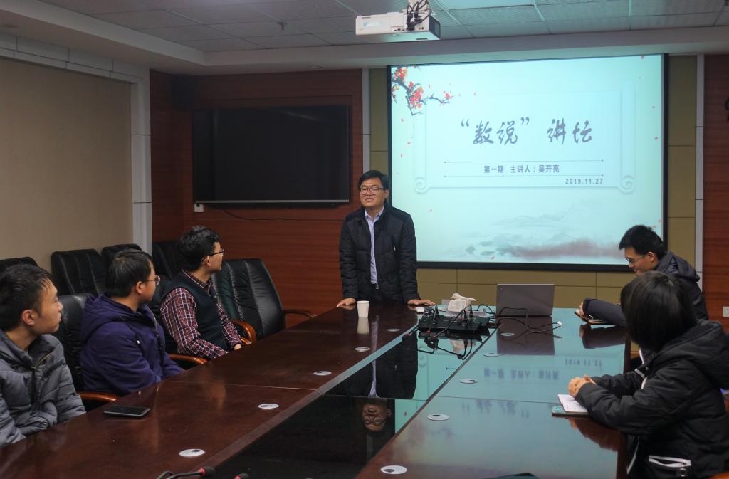 会议伊始,张发雄对吴开亮的到来表示欢迎,并简述了开办“数说”讲坛的初衷,表示以后将继续邀请优秀员工返校进行讲座。紧接着,柴振华详细介绍了吴开亮的个人经历,吴开亮于2007年进入betway西汉姆联官方网站数学与应用数学专业学习,2011年保送至北京大学数学科学公司科学与工程计算系师从汤华中教授,2016年博士毕业以后,分别在美国犹他大学、俄亥俄州立大学从事博士后研究工作。近年来,吴开亮主要从事偏微分方程组的高精度数值方法、数据驱动建模及科学计算等方面的研究,特别是磁流体和相对论流体力学方程组的保物理约束方法及其理论分析方面取得了突出研究成果。至今,吴开亮博士已在SIAM J. Numer. Anal.、SIAM J. Sci. Comput.、Numer. Math.、J. Comput. Phys.等计算数学顶级期刊上发表学术论文20余篇。吴开亮博士曾于2015年荣获中国计算数学学会优秀青年论文奖一等奖,2019年荣获钟家庆数学奖(中国数学会三大奖之一)。