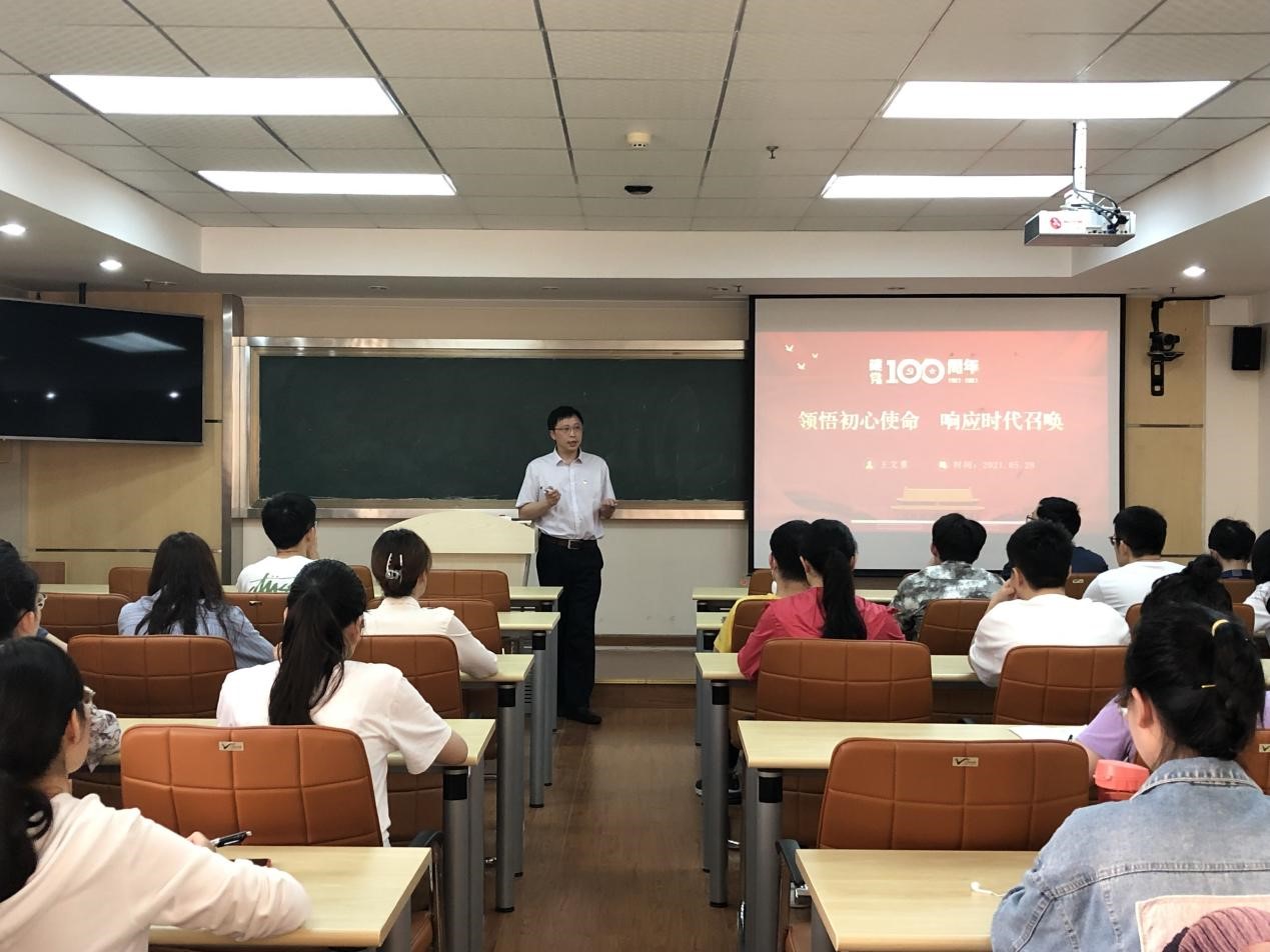在中国共产党成立100周年之际,为深入贯彻落实习近平总书记在党史学习教育动员大会上的重要讲话精神,把“学党史、悟思想、办实事、开新局”贯穿学习教育全过程。5月28日下午,公司党委书记王文重在科技楼602室为研究生讲授“领悟初心使命,响应时代号召”的思政课,课程由学工组长王佳恒主持。