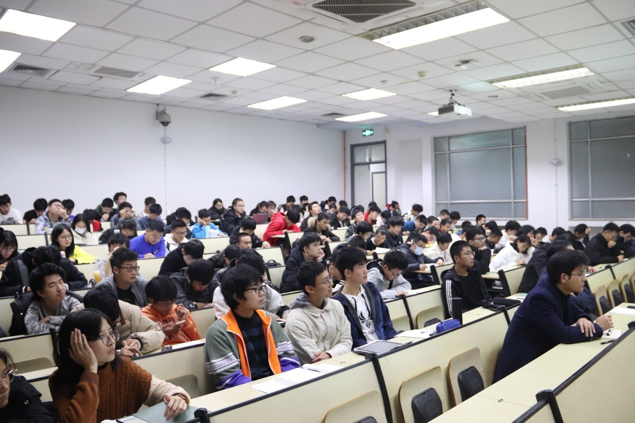 12月10日晚,公司党委书记王文重在西十二教学楼S402教室为2021级本科生讲授主题为“走好中国式现代化新道路”思政课。