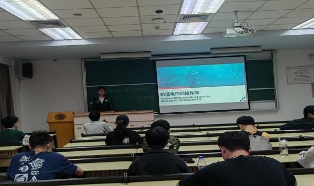 班会第一项,赵翊轩同学向大家介绍相关安全知识。首先是电信网络诈骗,赵翊轩介绍说,在如今互联网高速发展的时代,电信网络诈骗形式多样,如网上刷单诈骗,冒充网站客服诈骗等,需要人们多加小心。赵翊轩讲得十分生动且有趣,同学们都听得津津有味。其次是新冠肺炎及肺结核相关安全知识介绍。介绍过程中,赵翊轩举了个别公司肺结核传染的例子,加深了同学们的印象,深化了同学们对肺结核的认识,其也向同学们阐述了肺结核上报及治疗流程。