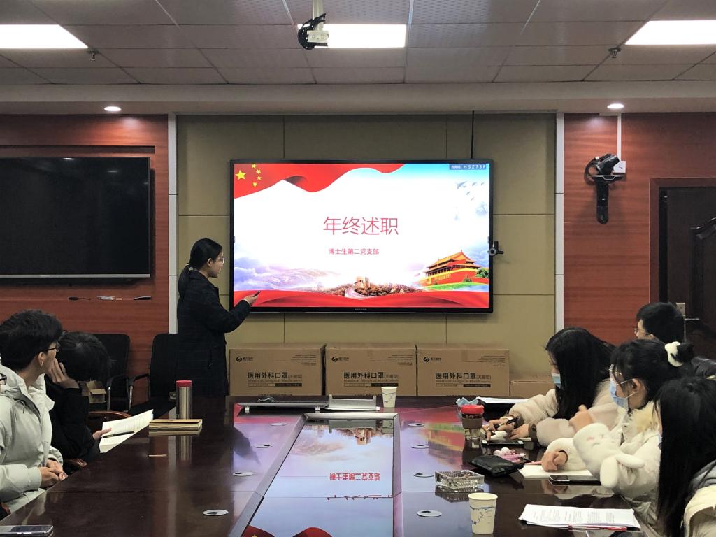 第九个汇报的是应用统计研究生党支部,支部书记汪琪美分别从组织生活会、一支一品+责任田、特色活动三个方面进行汇报。该支部除了将责任田和一支一品相结合,还采取了每月线上会议热评的方式学习习近平总书记系列重要讲话精神。在听取了前面各位书记的汇报,她表明以后也会对党建工作进行创新型推广,提升支部主观能动性。