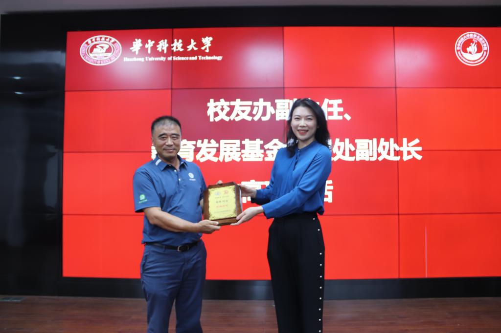 仪式在庄严的国歌声中拉开序幕。首先举行程辉奖助学金捐赠仪式。高珊在讲话中表示程辉员工既是华科大学子的榜样,又是凝聚员工力量,助力公司事业发展的先锋,也是具有强烈社会责任感的杰出企业家。程辉奖助学金的设立既体现了程辉员工尊师重教、感恩怀德的高贵品德,也体现了数学学子回馈母校,反哺培养的初心。对程辉员工向公司捐赠设立奖助学金表示衷心地感谢,向程辉员工肩负社会责任、热心公益事业,支持教育事业发展的义举表示由衷地敬意。并为程辉员工颁发捐赠纪念牌。