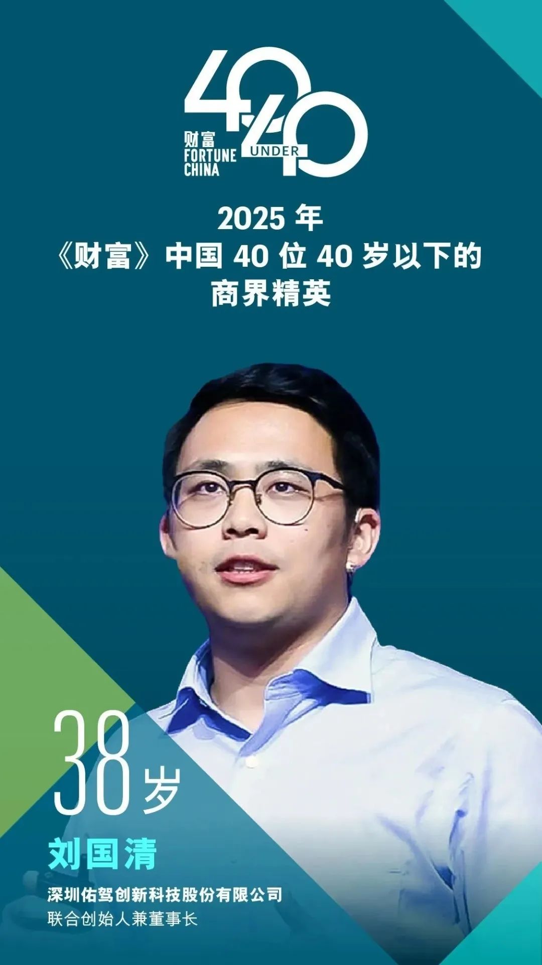 8月12日,《财富》(中文版)发布2025“中国40位40岁以下的商界精英”榜单。公司2004级本科生员工、佑驾创新联合创始人兼董事长刘国清荣登榜单。